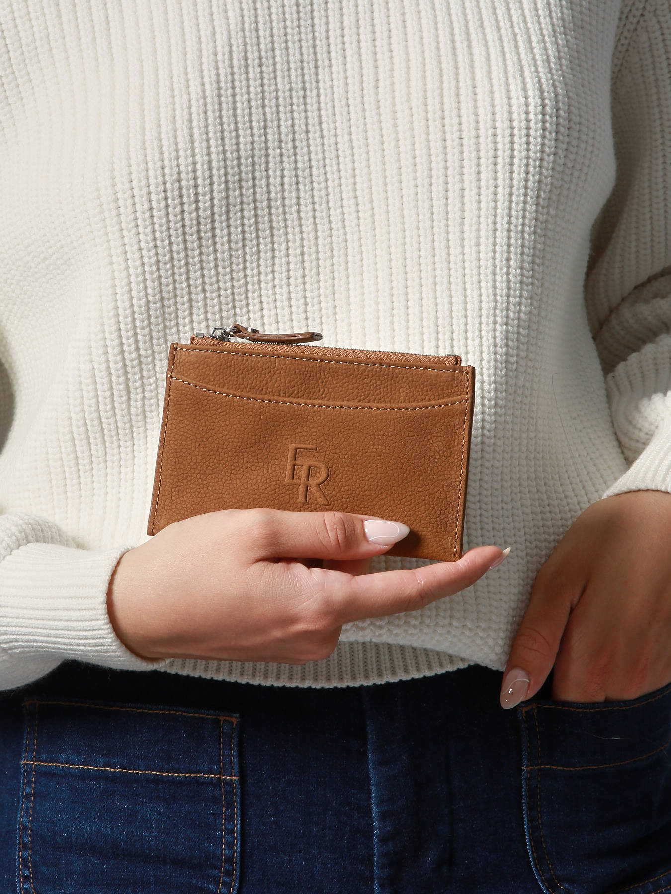The ETRIER card holder from the CAVALIER NUBUCK line combines simplicity and functionality in a compact format. Crafted in nubuck leather, it charms with its velvety feel and refined look. It features a zipped main pocket, perfect for keeping your coins secure, along with four dedicated slots for your bank cards. The embossed ETRIER logo subtly highlights the authenticity and elegance of this everyday essential. A practical and stylish companion, designed to follow you everywhere with ease.